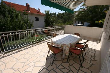 Ferienwohnung bietet Platz für 4 Gäste. Die Betten sind in Schlafzimmern, die es 2 gibt, innerhalb einer Gesamtfläche von 56m2, angeordnet. Die Gäste haben eine eigene Terrasse zur Verfügung, auf der sie in warmen Sommernächten genießen können. Es ist erlaubt, Speisen auf dem Gemeinschafts-Grill vorzubereiten.