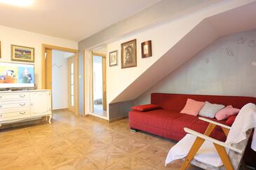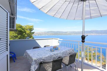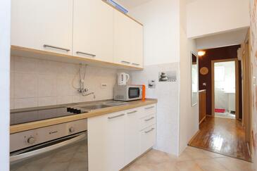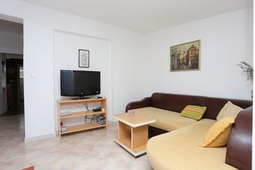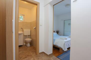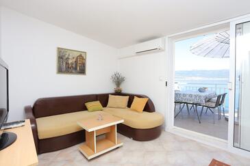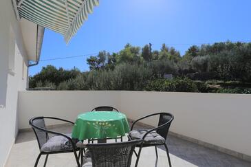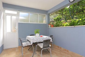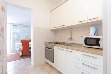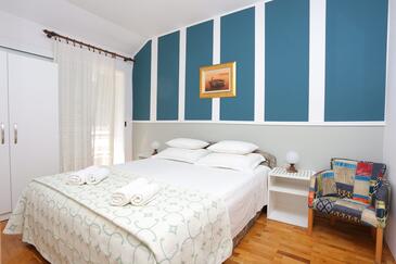 Ferienwohnung bietet Platz für 4 Gäste. Die Betten sind in Schlafzimmern, die es 2 gibt, innerhalb einer Gesamtfläche von 44m2, angeordnet. Die Gäste haben eine eigene Terrasse zur Verfügung, auf der sie in warmen Sommernächten genießen können. Das Apartment bietet Meerblick. Es ist erlaubt, Speisen auf dem Gemeinschafts-Grill vorzubereiten.