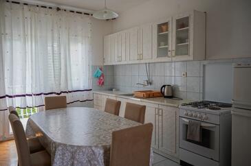 Ferienwohnung bietet Platz für 8 Gäste. Die Betten sind in Schlafzimmern, die es 2 gibt, und in Wohnzimmer, innerhalb einer Gesamtfläche von 83m2, angeordnet. Die Gäste haben eine eigene Terrasse zur Verfügung, auf der sie in warmen Sommernächten genießen können. Es ist erlaubt, Speisen auf dem Gemeinschafts-Grill vorzubereiten. In der Unterkunftseinheit besteht die Möglichkeit des Mitbringens von Haustieren gegen Aufpreis.