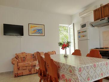 Ferienwohnung bietet Platz für 4 Gäste. Die Betten sind in Schlafzimmern, die es 2 gibt, und in Esszimmer, innerhalb einer Gesamtfläche von 45m2, angeordnet. Die Gäste können den Meerblick von eigener Terrasse genießen. Es ist erlaubt, Speisen auf dem Gemeinschafts-Grill vorzubereiten. In der Unterkunftseinheit besteht die Möglichkeit des Mitbringens von Haustieren gegen Aufpreis.