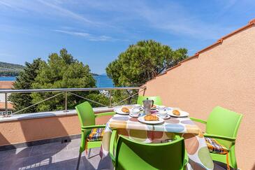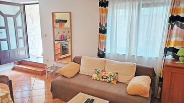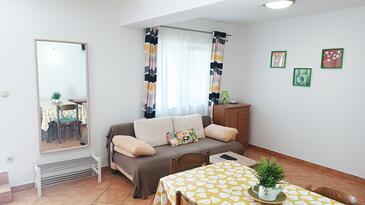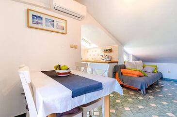 Ferienwohnung bietet Platz für 5 Gäste. Die Betten sind in Schlafzimmern, die es 2 gibt, innerhalb einer Gesamtfläche von 56m2, angeordnet. Die Gäste haben eine eigene Terrasse zur Verfügung, auf der sie in warmen Sommernächten genießen können. Das Apartment bietet Meerblick. In der Unterkunftseinheit besteht die Möglichkeit des Mitbringens von Haustieren gegen Aufpreis.