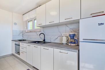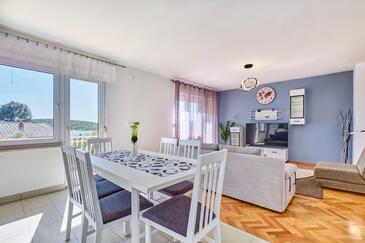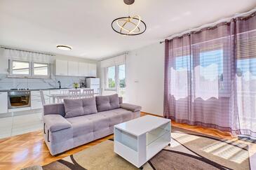 Ferienwohnung bietet Platz für 5 Gäste. Die Betten sind in Schlafzimmern, die es 3 gibt, innerhalb einer Gesamtfläche von 110m2, angeordnet. Die Gäste haben einen eigenen Balkon zur Verfügung, auf der sie in warmen Sommernächten genießen können. Das Apartment bietet Meerblick. Es ist erlaubt, Speisen auf dem Gemeinschafts-Grill vorzubereiten.