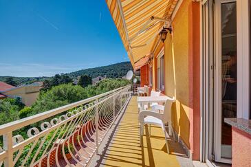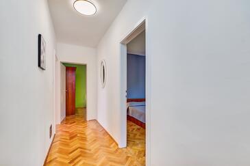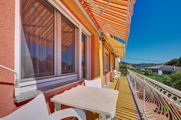 Ferienwohnung bietet Platz für 5 Gäste. Die Betten sind in Schlafzimmern, die es 3 gibt, innerhalb einer Gesamtfläche von 110m2, angeordnet. Die Gäste haben einen eigenen Balkon zur Verfügung, auf der sie in warmen Sommernächten genießen können. Das Apartment bietet Meerblick. Es ist erlaubt, Speisen auf dem Gemeinschafts-Grill vorzubereiten.