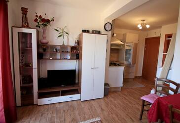 Ferienwohnung bietet Platz für 2 Gäste. Die Betten sind in Schlafzimmern, die es 1 gibt, innerhalb einer Gesamtfläche von 32m2, angeordnet. Die Gäste haben einen eigenen Balkon zur Verfügung, auf der sie in warmen Sommernächten genießen können. Das Apartment bietet Meerblick. Es ist erlaubt, Speisen auf dem Gemeinschafts-Grill vorzubereiten. In der Unterkunftseinheit besteht die Möglichkeit des Mitbringens von Haustieren gegen Aufpreis.