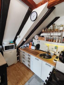 Haus bietet Platz für 5 Gäste. Die Betten sind in Schlafzimmern, die es 3 gibt, innerhalb einer Gesamtfläche von 94m2, angeordnet. Die Gäste haben eine eigene Terrasse zur Verfügung, auf der sie in warmen Sommernächten genießen können. Das Haus bietet Meerblick. Für vollen Genuss und Entspannung gibt es einen privaten Grill für Gäste dieser Unterkunft. In der Unterkunftseinheit besteht die Möglichkeit des Mitbringens von Haustieren, und die Dienstleistung ist im Preis der Unterkunft enthalten.