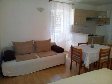 Studio bietet Platz für 3 Gäste. Die Betten sind in Schlafzimmern, die es 1 gibt, innerhalb einer Gesamtfläche von 27m2, angeordnet. Die Gäste haben eine eigene Terrasse zur Verfügung, auf der sie in warmen Sommernächten genießen können. In der Unterkunftseinheit besteht die Möglichkeit des Mitbringens von Haustieren gegen Aufpreis.