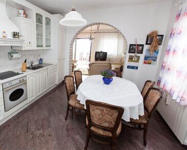 Ferienwohnung bietet Platz für 7 Gäste. Die Betten sind in Schlafzimmern, die es 3 gibt, innerhalb einer Gesamtfläche von 114m2, angeordnet. Die Gäste haben einen eigenen Balkon zur Verfügung, auf der sie in warmen Sommernächten genießen können. Das Apartment bietet Meerblick. Es ist erlaubt, Speisen auf dem Gemeinschafts-Grill vorzubereiten. In der gebuchten Unterkunftseinheit zahlt man am Ort ein Depositum ( der Preis ist an der Internetseite angeführt ).