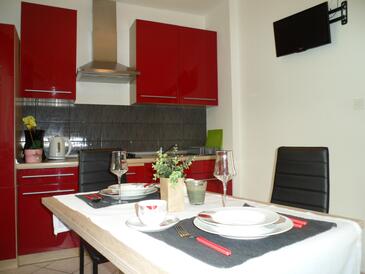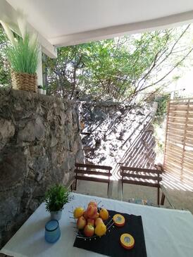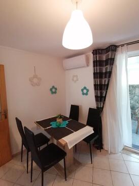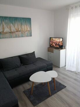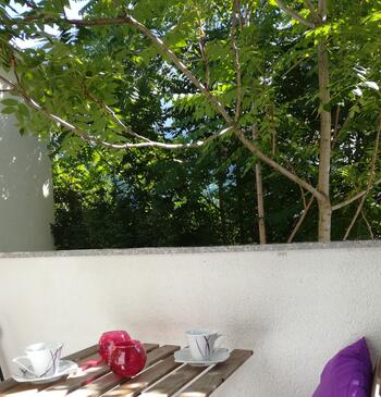 Ferienwohnung bietet Platz für 4 Gäste. Die Betten sind in Schlafzimmern, die es 2 gibt, innerhalb einer Gesamtfläche von 42m2, angeordnet. Die Gäste haben eine eigene Terrasse zur Verfügung, auf der sie in warmen Sommernächten genießen können. Das Apartment bietet Meerblick.