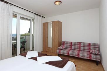 Ferienwohnung bietet Platz für 4 Gäste. Die Betten sind in Schlafzimmern, die es 2 gibt, innerhalb einer Gesamtfläche von 41m2, angeordnet. Die Gäste haben eine eigene Terrasse zur Verfügung, auf der sie in warmen Sommernächten genießen können. Für vollen Genuss und Entspannung gibt es einen privaten Grill für Gäste dieser Unterkunft.