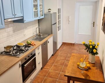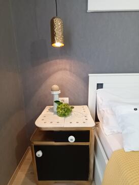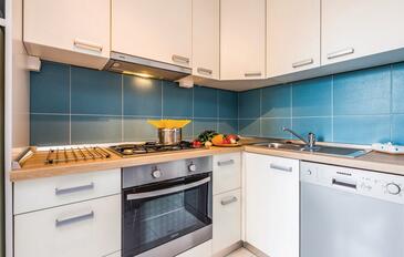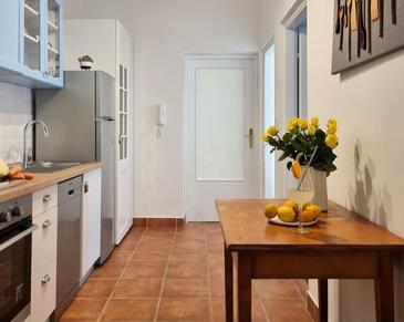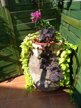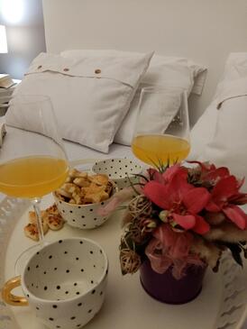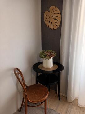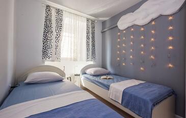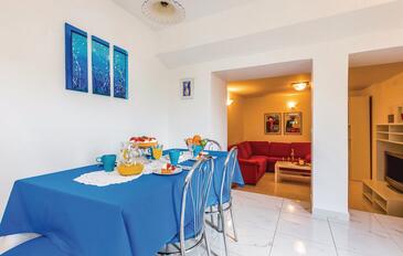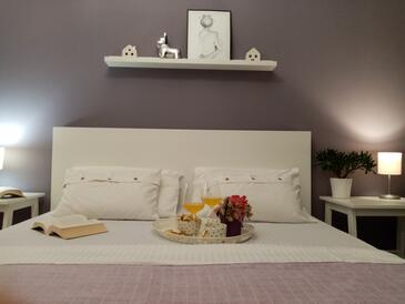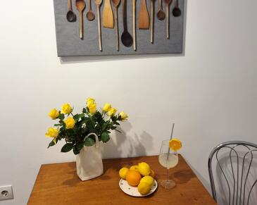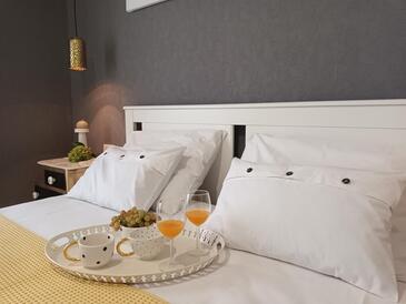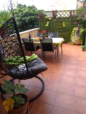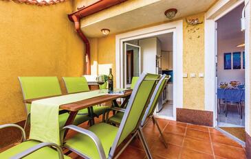 Ferienwohnung bietet Platz für 5 Gäste. Die Betten sind in Schlafzimmern, die es 3 gibt, innerhalb einer Gesamtfläche von 87m2, angeordnet. Die Gäste haben eine eigene Terrasse zur Verfügung, auf der sie in warmen Sommernächten genießen können.