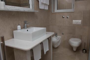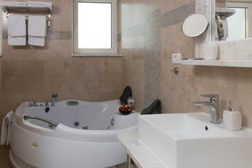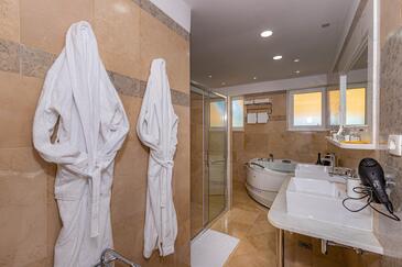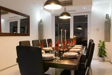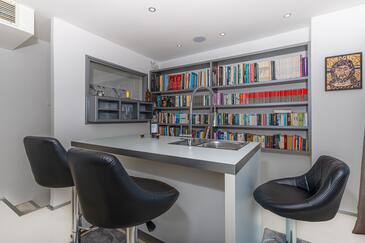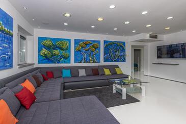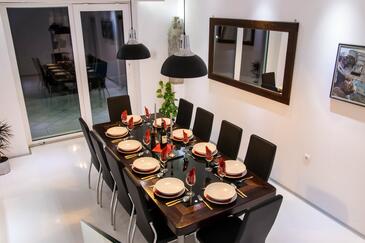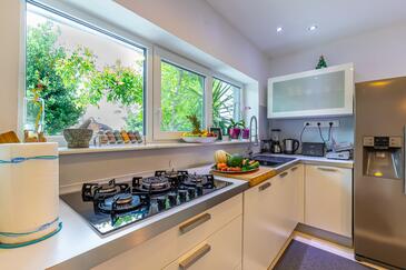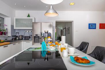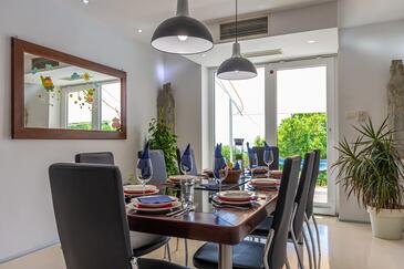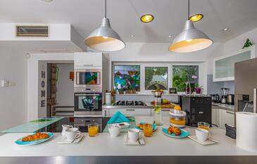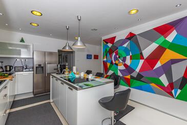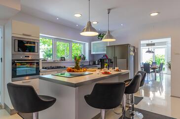 Haus bietet Platz für 10 Gäste. Die Betten sind in Schlafzimmern, die es 4 gibt, innerhalb einer Gesamtfläche von 245m2, angeordnet. Die Gäste haben eine eigene Terrasse zur Verfügung, auf der sie in warmen Sommernächten genießen können. Das Haus bietet Meerblick. Für vollen Genuss und Entspannung gibt es einen privaten Grill für Gäste dieser Unterkunft. Während ihres Aufenthalts können sich Gäste im privaten Schwimmbad entspannen. In der Unterkunftseinheit besteht die Möglichkeit des Mitbringens von Haustieren gegen Aufpreis. In der gebuchten Unterkunftseinheit zahlt man am Ort ein Depositum ( der Preis ist an der Internetseite angeführt ).
