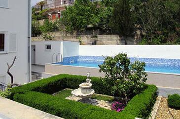 Ferienwohnung bietet Platz für 3 Gäste. Die Betten sind in Schlafzimmern, die es 1 gibt, und in Wohnzimmer, innerhalb einer Gesamtfläche von 30m2, angeordnet. Die Gäste haben eine eigene Terrasse zur Verfügung, auf der sie in warmen Sommernächten genießen können. Das Apartment bietet Meerblick. Es ist erlaubt, Speisen auf dem Gemeinschafts-Grill vorzubereiten. Während ihres Aufenthalts können Gäste das gemeinsam zur Nutzung stehende Schwimmbad benutzen.