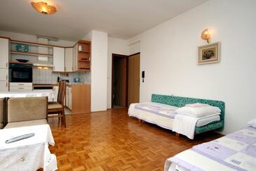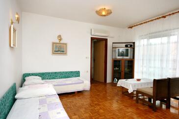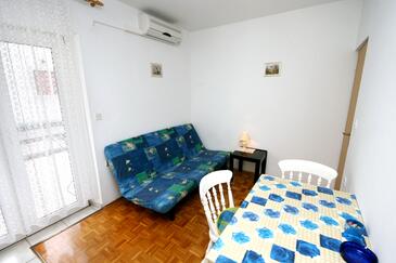 Ferienwohnung bietet Platz für 4 Gäste. Die Betten sind in Schlafzimmern, die es 1 gibt, und in Wohnzimmer, innerhalb einer Gesamtfläche von 38m2, angeordnet. Die Gäste haben eine eigene Terrasse zur Verfügung, auf der sie in warmen Sommernächten genießen können. Das Apartment bietet Meerblick. Es ist erlaubt, Speisen auf dem Gemeinschafts-Grill vorzubereiten. In der Unterkunftseinheit besteht die Möglichkeit des Mitbringens von Haustieren gegen Aufpreis.