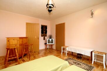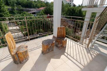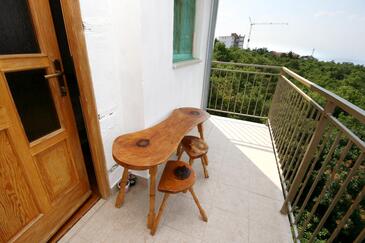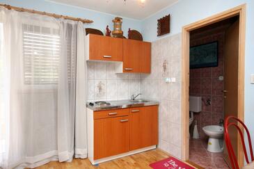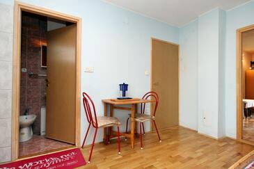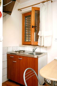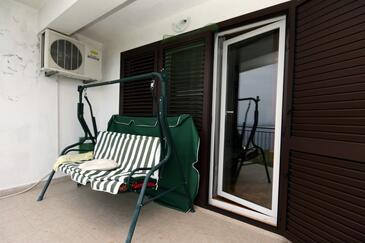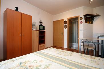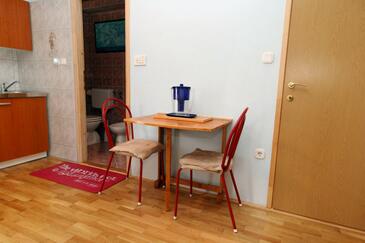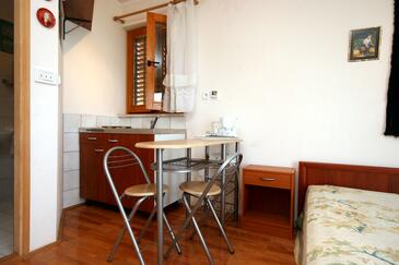 Studio bietet Platz für 4 Gäste. Die Betten sind in Schlafzimmern, die es 1 gibt, und in Wohnzimmer, innerhalb einer Gesamtfläche von 39m2, angeordnet. Die Gäste haben eine eigene Terrasse zur Verfügung, auf der sie in warmen Sommernächten genießen können. Das Studio-Apartment bietet Meerblick. Es ist erlaubt, Speisen auf dem Gemeinschafts-Grill vorzubereiten.