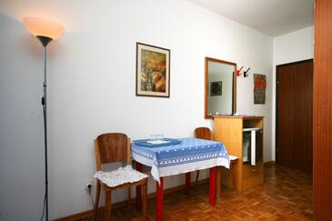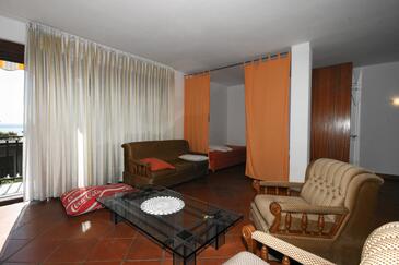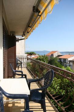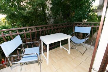 Ferienwohnung bietet Platz für 4 Gäste. Die Betten sind in Schlafzimmern, die es 1 gibt, und in Wohnzimmer, innerhalb einer Gesamtfläche von 59m2, angeordnet. Die Gäste haben eine eigene Terrasse zur Verfügung, auf der sie in warmen Sommernächten genießen können. Das Apartment bietet Meerblick. Es ist erlaubt, Speisen auf dem Gemeinschafts-Grill vorzubereiten.