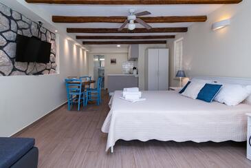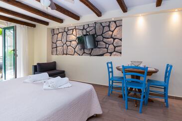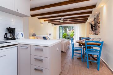 Ferienwohnung bietet Platz für 3 Gäste. Die Betten sind in Schlafzimmern, die es 2 gibt, innerhalb einer Gesamtfläche von 62m2, angeordnet. Die Gäste haben eine eigene Terrasse zur Verfügung, auf der sie in warmen Sommernächten genießen können. Das Apartment bietet Meerblick. Für vollen Genuss und Entspannung gibt es einen privaten Grill für Gäste dieser Unterkunft.