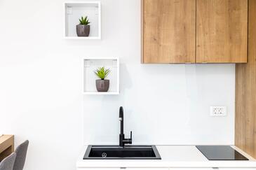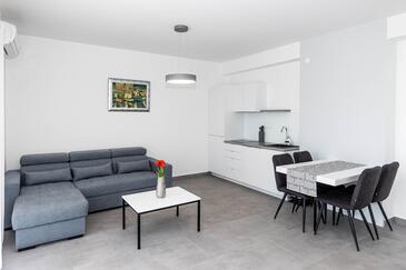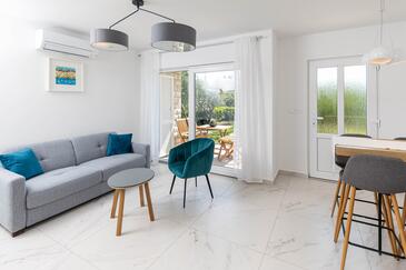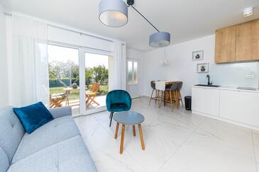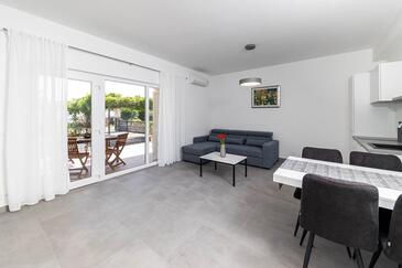 Ferienwohnung bietet Platz für 4 Gäste. Die Betten sind in Schlafzimmern, die es 1 gibt, und in Wohnzimmer, innerhalb einer Gesamtfläche von 53m2, angeordnet. Die Gäste haben eine eigene Terrasse zur Verfügung, auf der sie in warmen Sommernächten genießen können.