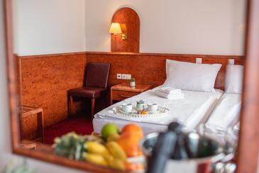 Zimmer bietet Platz für 3 Gäste. Die Betten sind in Schlafzimmern, die es 1 gibt, innerhalb einer Gesamtfläche von 18m2, angeordnet. Die Gäste haben einen eigenen Balkon zur Verfügung, auf der sie in warmen Sommernächten genießen können. Während ihres Aufenthalts können Gäste das gemeinsam zur Nutzung stehende Schwimmbad benutzen. Die reservierte Unterkunftseinheit ist ein Zimmer mit eigenem Badezimmer ohne die Möglichkeit der Nutzung einer Küche.