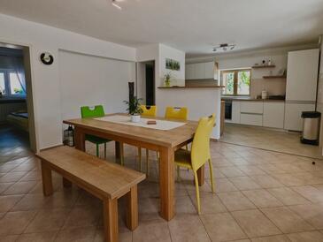 Ferienwohnung bietet Platz für 5 Gäste. Die Betten sind in Schlafzimmern, die es 3 gibt, innerhalb einer Gesamtfläche von 72m2, angeordnet. Die Gäste haben eine eigene Terrasse zur Verfügung, auf der sie in warmen Sommernächten genießen können.