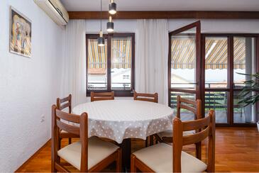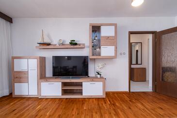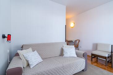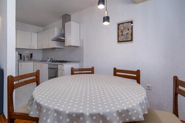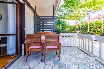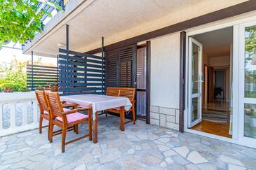 Ferienwohnung bietet Platz für 6 Gäste. Die Betten sind in Schlafzimmern, die es 3 gibt, innerhalb einer Gesamtfläche von 78m2, angeordnet. Die Gäste haben eine eigene Terrasse zur Verfügung, auf der sie in warmen Sommernächten genießen können. Das Apartment bietet Meerblick. Es ist erlaubt, Speisen auf dem Gemeinschafts-Grill vorzubereiten.