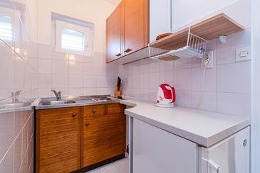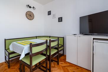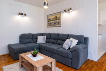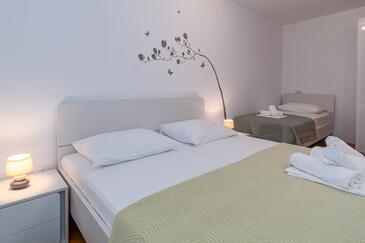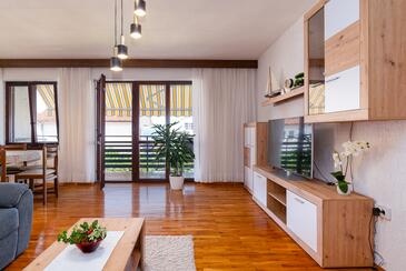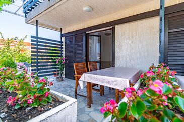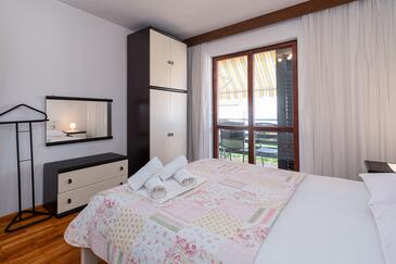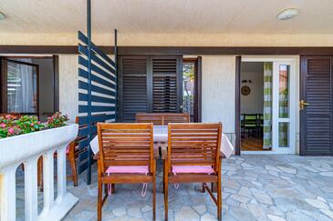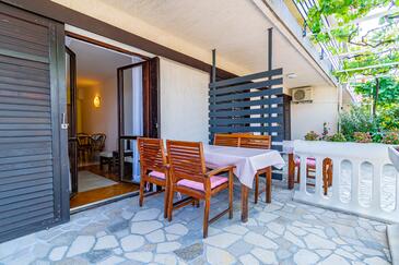 Ferienwohnung bietet Platz für 6 Gäste. Die Betten sind in Schlafzimmern, die es 3 gibt, innerhalb einer Gesamtfläche von 78m2, angeordnet. Die Gäste haben eine eigene Terrasse zur Verfügung, auf der sie in warmen Sommernächten genießen können. Das Apartment bietet Meerblick. Es ist erlaubt, Speisen auf dem Gemeinschafts-Grill vorzubereiten.