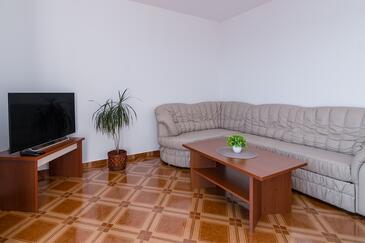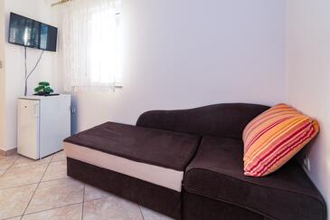 Ferienwohnung bietet Platz für 5 Gäste. Die Betten sind in Schlafzimmern, die es 2 gibt, und in Wohnzimmer, innerhalb einer Gesamtfläche von 68m2, angeordnet. Die Gäste haben einen eigenen Balkon zur Verfügung, auf der sie in warmen Sommernächten genießen können. Das Apartment bietet Meerblick. Es ist erlaubt, Speisen auf dem Gemeinschafts-Grill vorzubereiten. Während ihres Aufenthalts können Gäste das gemeinsam zur Nutzung stehende Schwimmbad benutzen. In der Unterkunftseinheit besteht die Möglichkeit des Mitbringens von Haustieren gegen Aufpreis.
