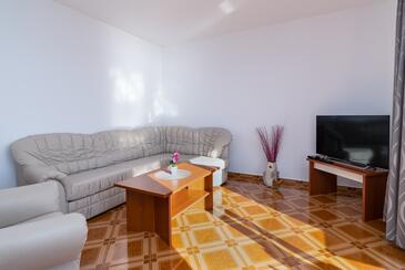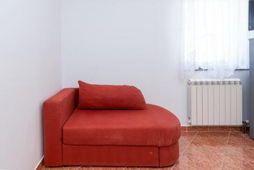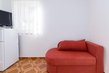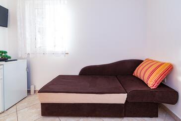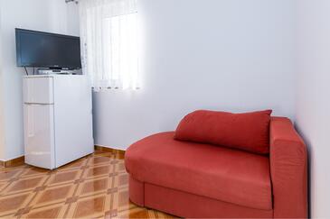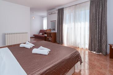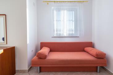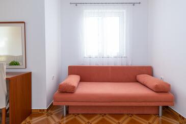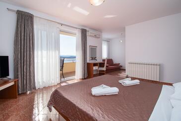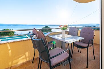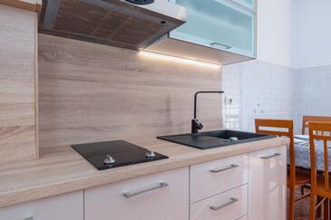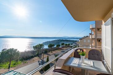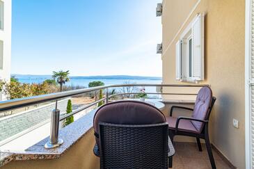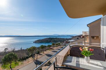 Ferienwohnung bietet Platz für 5 Gäste. Die Betten sind in Schlafzimmern, die es 2 gibt, und in Wohnzimmer, innerhalb einer Gesamtfläche von 68m2, angeordnet. Die Gäste haben einen eigenen Balkon zur Verfügung, auf der sie in warmen Sommernächten genießen können. Das Apartment bietet Meerblick. Es ist erlaubt, Speisen auf dem Gemeinschafts-Grill vorzubereiten. Während ihres Aufenthalts können Gäste das gemeinsam zur Nutzung stehende Schwimmbad benutzen. In der Unterkunftseinheit besteht die Möglichkeit des Mitbringens von Haustieren gegen Aufpreis.