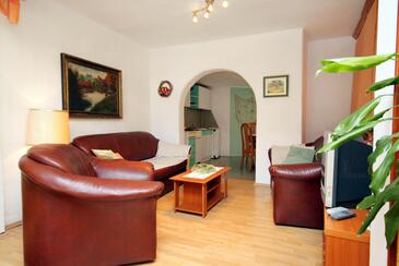 Ferienwohnung bietet Platz für 5 Gäste. Die Betten sind in Schlafzimmern, die es 2 gibt, innerhalb einer Gesamtfläche von 53m2, angeordnet. Die Gäste haben eine eigene Terrasse zur Verfügung, auf der sie in warmen Sommernächten genießen können. Das Apartment bietet Meerblick. Es ist erlaubt, Speisen auf dem Gemeinschafts-Grill vorzubereiten. In der Unterkunftseinheit besteht die Möglichkeit des Mitbringens von Haustieren gegen Aufpreis.