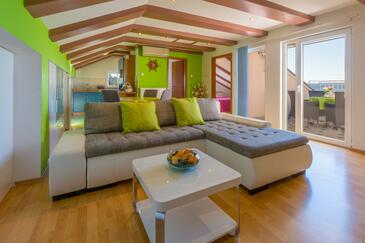 Ferienwohnung bietet Platz für 5 Gäste. Die Betten sind in Schlafzimmern, die es 2 gibt, und in Wohnzimmer, innerhalb einer Gesamtfläche von 72m2, angeordnet. Die Gäste haben eine eigene Terrasse zur Verfügung, auf der sie in warmen Sommernächten genießen können. Das Apartment bietet Meerblick.