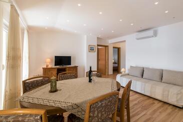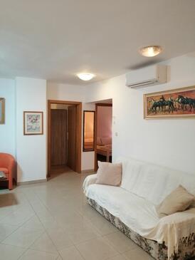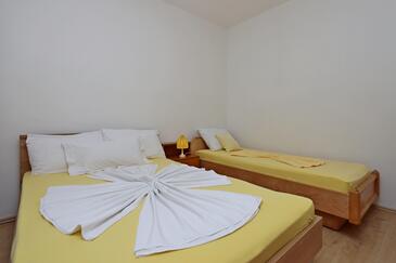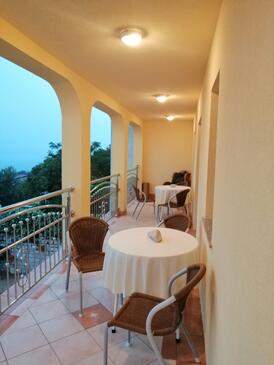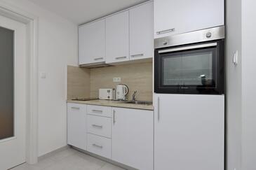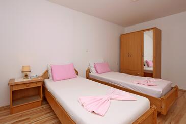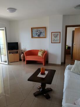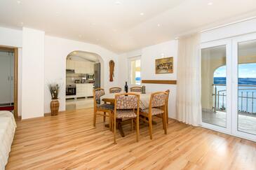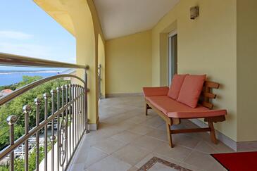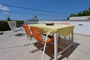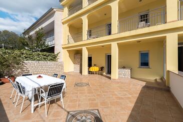Ferienwohnung bietet Platz für 6 Gäste. Die Betten sind in Schlafzimmern, die es 3 gibt, innerhalb einer Gesamtfläche von 70m2, angeordnet. Die Gäste haben eine eigene Terrasse zur Verfügung, auf der sie in warmen Sommernächten genießen können. Das Apartment bietet Meerblick. Es ist erlaubt, Speisen auf dem Gemeinschafts-Grill vorzubereiten.