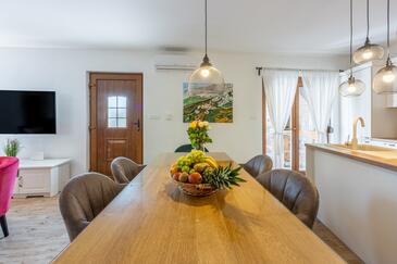 Haus bietet Platz für 6 Gäste. Die Betten sind in Schlafzimmern, die es 3 gibt, innerhalb einer Gesamtfläche von 127m2, angeordnet. Die Gäste haben eine eigene Terrasse zur Verfügung, auf der sie in warmen Sommernächten genießen können. Das Haus bietet Meerblick. Für vollen Genuss und Entspannung gibt es einen privaten Grill für Gäste dieser Unterkunft. Während ihres Aufenthalts können sich Gäste im privaten Schwimmbad entspannen. In der gebuchten Unterkunftseinheit zahlt man am Ort ein Depositum ( der Preis ist an der Internetseite angeführt ).