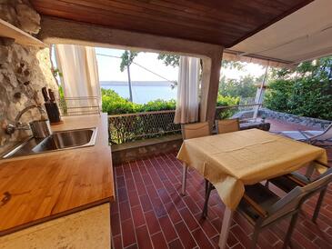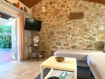 Haus bietet Platz für 4 Gäste. Die Betten sind in Schlafzimmern, die es 1 gibt, und in Wohnzimmer, innerhalb einer Gesamtfläche von 26m2, angeordnet. Die Gäste haben eine eigene Terrasse zur Verfügung, auf der sie in warmen Sommernächten genießen können. Das Haus bietet Meerblick. Es ist erlaubt, Speisen auf dem Gemeinschafts-Grill vorzubereiten. In der Unterkunftseinheit besteht die Möglichkeit des Mitbringens von Haustieren gegen Aufpreis.