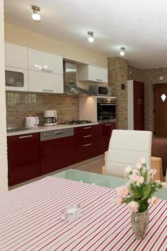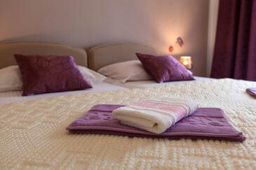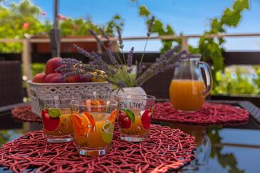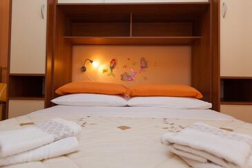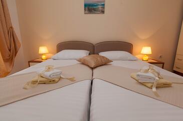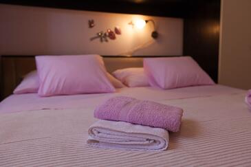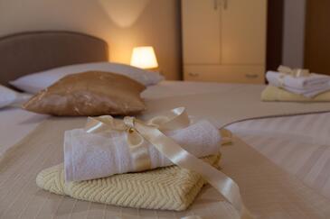 Ferienwohnung bietet Platz für 4 Gäste. Die Betten sind in Schlafzimmern, die es 2 gibt, innerhalb einer Gesamtfläche von 46m2, angeordnet. Die Gäste haben eine eigene Terrasse zur Verfügung, auf der sie in warmen Sommernächten genießen können. Das Apartment bietet Meerblick. Es ist erlaubt, Speisen auf dem Gemeinschafts-Grill vorzubereiten. In der Unterkunftseinheit besteht die Möglichkeit des Mitbringens von Haustieren gegen Aufpreis.
