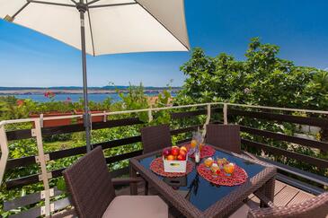 Ferienwohnung bietet Platz für 4 Gäste. Die Betten sind in Schlafzimmern, die es 2 gibt, innerhalb einer Gesamtfläche von 46m2, angeordnet. Die Gäste haben eine eigene Terrasse zur Verfügung, auf der sie in warmen Sommernächten genießen können. Das Apartment bietet Meerblick. Es ist erlaubt, Speisen auf dem Gemeinschafts-Grill vorzubereiten. In der Unterkunftseinheit besteht die Möglichkeit des Mitbringens von Haustieren gegen Aufpreis.