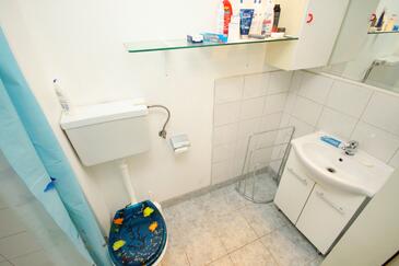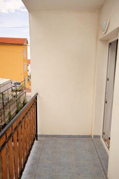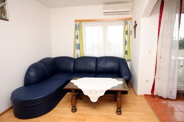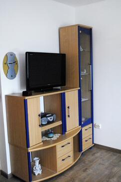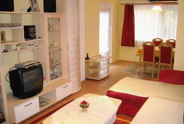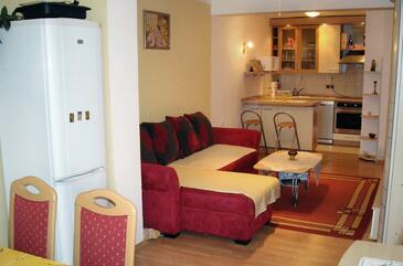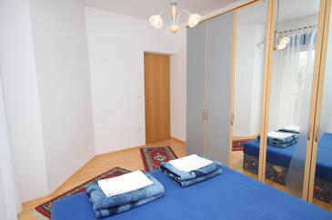 Ferienwohnung bietet Platz für 5 Gäste. Die Betten sind in Schlafzimmern, die es 2 gibt, innerhalb einer Gesamtfläche von 54m2, angeordnet. Die Gäste haben eine eigene Terrasse zur Verfügung, auf der sie in warmen Sommernächten genießen können. Das Apartment bietet Meerblick. Es ist erlaubt, Speisen auf dem Gemeinschafts-Grill vorzubereiten.