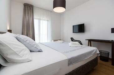 Zimmer bietet Platz für 2 Gäste. Die Betten sind in Schlafzimmern, die es 1 gibt, innerhalb einer Gesamtfläche von 23m2, angeordnet. Die Gäste haben einen eigenen Balkon zur Verfügung, auf der sie in warmen Sommernächten genießen können. Das Zimmer bietet Meerblick. Die reservierte Unterkunftseinheit ist ein Zimmer mit eigenem Badezimmer ohne die Möglichkeit der Nutzung einer Küche.