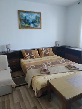 Ferienwohnung bietet Platz für 4 Gäste. Die Betten sind in Schlafzimmern, die es 2 gibt, innerhalb einer Gesamtfläche von 64m2, angeordnet. Die Gäste haben einen eigenen Balkon zur Verfügung, auf der sie in warmen Sommernächten genießen können. Das Apartment bietet Meerblick. Es ist erlaubt, Speisen auf dem Gemeinschafts-Grill vorzubereiten.