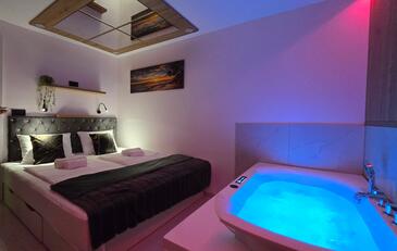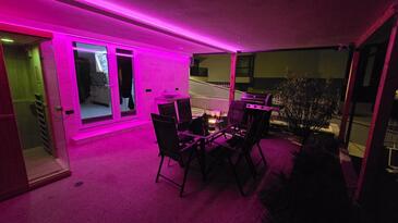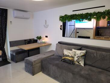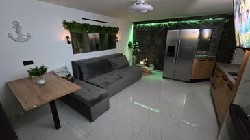 Ferienwohnung bietet Platz für 4 Gäste. Die Betten sind in Schlafzimmern, die es 1 gibt, und in Wohnzimmer, innerhalb einer Gesamtfläche von 47m2, angeordnet. Die Gäste haben eine eigene Terrasse zur Verfügung, auf der sie in warmen Sommernächten genießen können. Das Apartment bietet Meerblick. Es ist erlaubt, Speisen auf dem Gemeinschafts-Grill vorzubereiten.