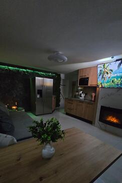 Ferienwohnung bietet Platz für 4 Gäste. Die Betten sind in Schlafzimmern, die es 1 gibt, und in Wohnzimmer, innerhalb einer Gesamtfläche von 47m2, angeordnet. Die Gäste haben eine eigene Terrasse zur Verfügung, auf der sie in warmen Sommernächten genießen können. Das Apartment bietet Meerblick. Es ist erlaubt, Speisen auf dem Gemeinschafts-Grill vorzubereiten.
