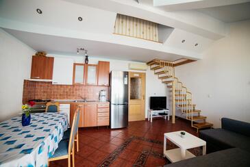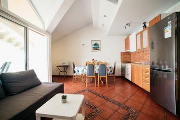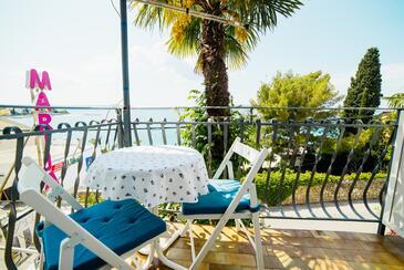 Ferienwohnung bietet Platz für 5 Gäste. Die Betten sind in Schlafzimmern, die es 2 gibt, und in Wohnzimmer, innerhalb einer Gesamtfläche von 89m2, angeordnet. Die Gäste haben eine eigene Terrasse zur Verfügung, auf der sie in warmen Sommernächten genießen können. Das Apartment bietet Meerblick.
