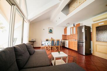 Ferienwohnung bietet Platz für 5 Gäste. Die Betten sind in Schlafzimmern, die es 2 gibt, und in Wohnzimmer, innerhalb einer Gesamtfläche von 89m2, angeordnet. Die Gäste haben eine eigene Terrasse zur Verfügung, auf der sie in warmen Sommernächten genießen können. Das Apartment bietet Meerblick.