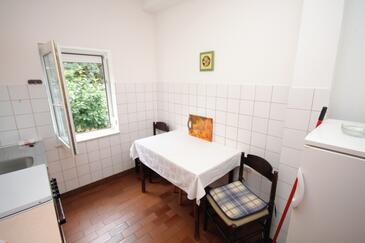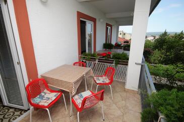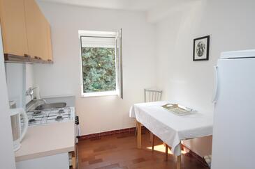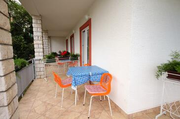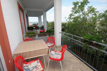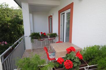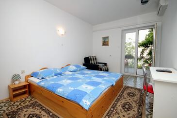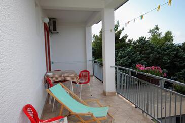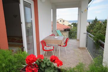 Ferienwohnung bietet Platz für 6 Gäste. Die Betten sind in Schlafzimmern, die es 2 gibt, innerhalb einer Gesamtfläche von 42m2, angeordnet. Die Gäste haben eine eigene Terrasse zur Verfügung, auf der sie in warmen Sommernächten genießen können. Das Apartment bietet Meerblick. Es ist erlaubt, Speisen auf dem Gemeinschafts-Grill vorzubereiten.