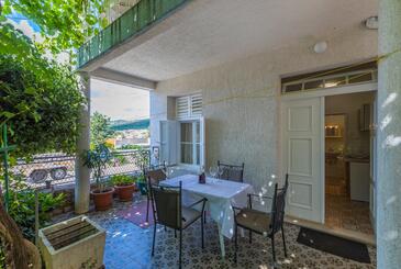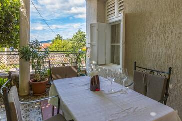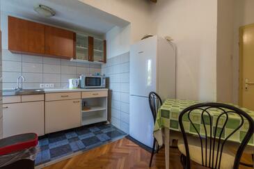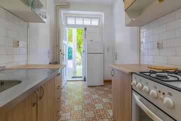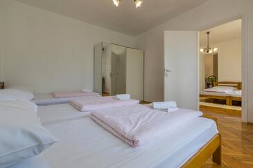 Ferienwohnung bietet Platz für 6 Gäste. Die Betten sind in Schlafzimmern, die es 2 gibt, innerhalb einer Gesamtfläche von 44m2, angeordnet. Die Gäste haben eine eigene Terrasse zur Verfügung, auf der sie in warmen Sommernächten genießen können. Es ist erlaubt, Speisen auf dem Gemeinschafts-Grill vorzubereiten.