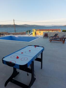 Ferienwohnung bietet Platz für 6 Gäste. Die Betten sind in Schlafzimmern, die es 2 gibt, und in Wohnzimmer, innerhalb einer Gesamtfläche von 83m2, angeordnet. Die Gäste haben eine eigene Terrasse zur Verfügung, auf der sie in warmen Sommernächten genießen können. Das Apartment bietet Meerblick. Für vollen Genuss und Entspannung gibt es einen privaten Grill für Gäste dieser Unterkunft. Während ihres Aufenthalts können Gäste das gemeinsam zur Nutzung stehende Schwimmbad benutzen. Räume der gebuchten Unterkunftseinheit werden nicht in eine Ganze verbunden.
