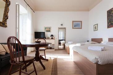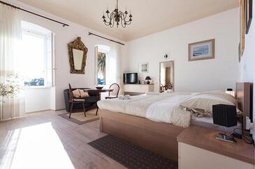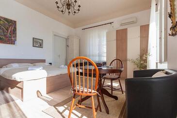 Ferienwohnung bietet Platz für 5 Gäste. Die Betten sind in Schlafzimmern, die es 2 gibt, innerhalb einer Gesamtfläche von 94m2, angeordnet. Die Gäste haben eine eigene Terrasse zur Verfügung, auf der sie in warmen Sommernächten genießen können. Das Apartment bietet Meerblick.