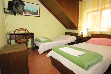 Zimmer bietet Platz für 2 Gäste. Die Betten sind in Schlafzimmern, die es 1 gibt, innerhalb einer Gesamtfläche von 12m2, angeordnet. Es ist erlaubt, Speisen auf dem Gemeinschafts-Grill vorzubereiten. In der Unterkunftseinheit besteht die Möglichkeit des Mitbringens von Haustieren, und die Dienstleistung ist im Preis der Unterkunft enthalten. Die reservierte Unterkunftseinheit hat keinen Balkon und keine Terrasse. Die reservierte Unterkunftseinheit ist ein Zimmer mit eigenem Badezimmer ohne die Möglichkeit der Nutzung einer Küche.