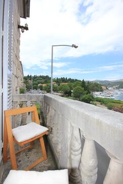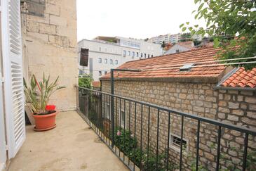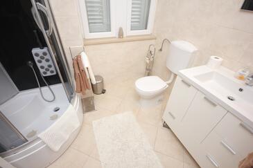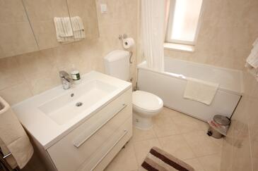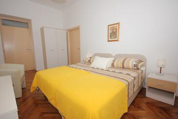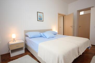 Ferienwohnung bietet Platz für 4 Gäste. Die Betten sind in Schlafzimmern, die es 2 gibt, innerhalb einer Gesamtfläche von 85m2, angeordnet. Die Gäste haben einen eigenen Balkon zur Verfügung, auf der sie in warmen Sommernächten genießen können. Das Apartment bietet Meerblick. Es ist erlaubt, Speisen auf dem Gemeinschafts-Grill vorzubereiten.