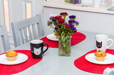 Ferienwohnung bietet Platz für 5 Gäste. Die Betten sind in Schlafzimmern, die es 2 gibt, und in Wohnzimmer, innerhalb einer Gesamtfläche von 45m2, angeordnet. Die Gäste haben einen eigenen Balkon zur Verfügung, auf der sie in warmen Sommernächten genießen können. Das Apartment bietet Meerblick.