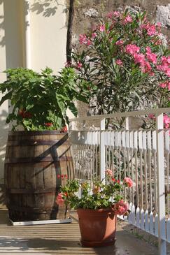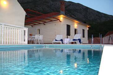 Haus bietet Platz für 5 Gäste. Die Betten sind in Schlafzimmern, die es 3 gibt, innerhalb einer Gesamtfläche von 73m2, angeordnet. Die Gäste haben eine eigene Terrasse zur Verfügung, auf der sie in warmen Sommernächten genießen können. Für vollen Genuss und Entspannung gibt es einen privaten Grill für Gäste dieser Unterkunft. Während ihres Aufenthalts können sich Gäste im privaten Schwimmbad entspannen. In der Unterkunftseinheit besteht die Möglichkeit des Mitbringens von Haustieren, und die Dienstleistung ist im Preis der Unterkunft enthalten.