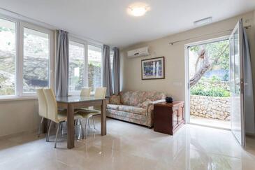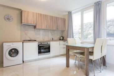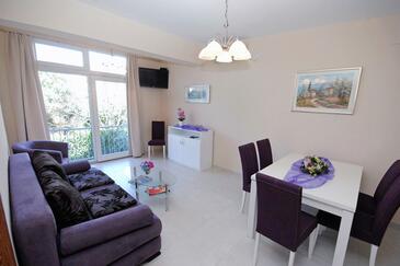 Ferienwohnung bietet Platz für 6 Gäste. Die Betten sind in Schlafzimmern, die es 2 gibt, und in Wohnzimmer, innerhalb einer Gesamtfläche von 66m2, angeordnet. Die Gäste haben eine eigene Terrasse zur Verfügung, auf der sie in warmen Sommernächten genießen können. Es ist erlaubt, Speisen auf dem Gemeinschafts-Grill vorzubereiten. Durch die Terrasse der gebuchten Unterkunftseinheit gehen auch andere Gäste oder Vermieter. Unterkunftseinheit hat Räume, die von dem Rest der Einheit abgetrennt werden. In der gebuchten Unterkunftseinheit zahlt man am Ort ein Depositum ( der Preis ist an der Internetseite angeführt ).